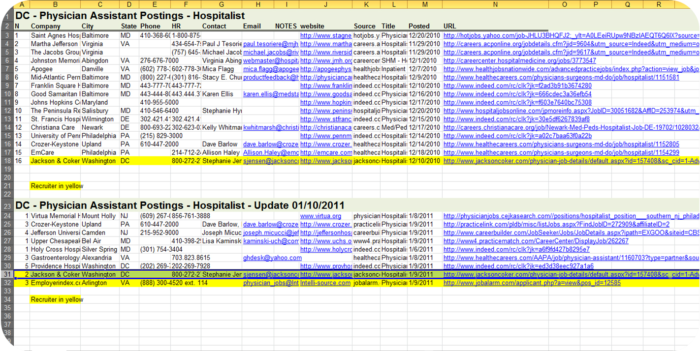 - All the marketing resources you need - including call lists to facilities with posted jobs that meet your candidate marketing requirements,